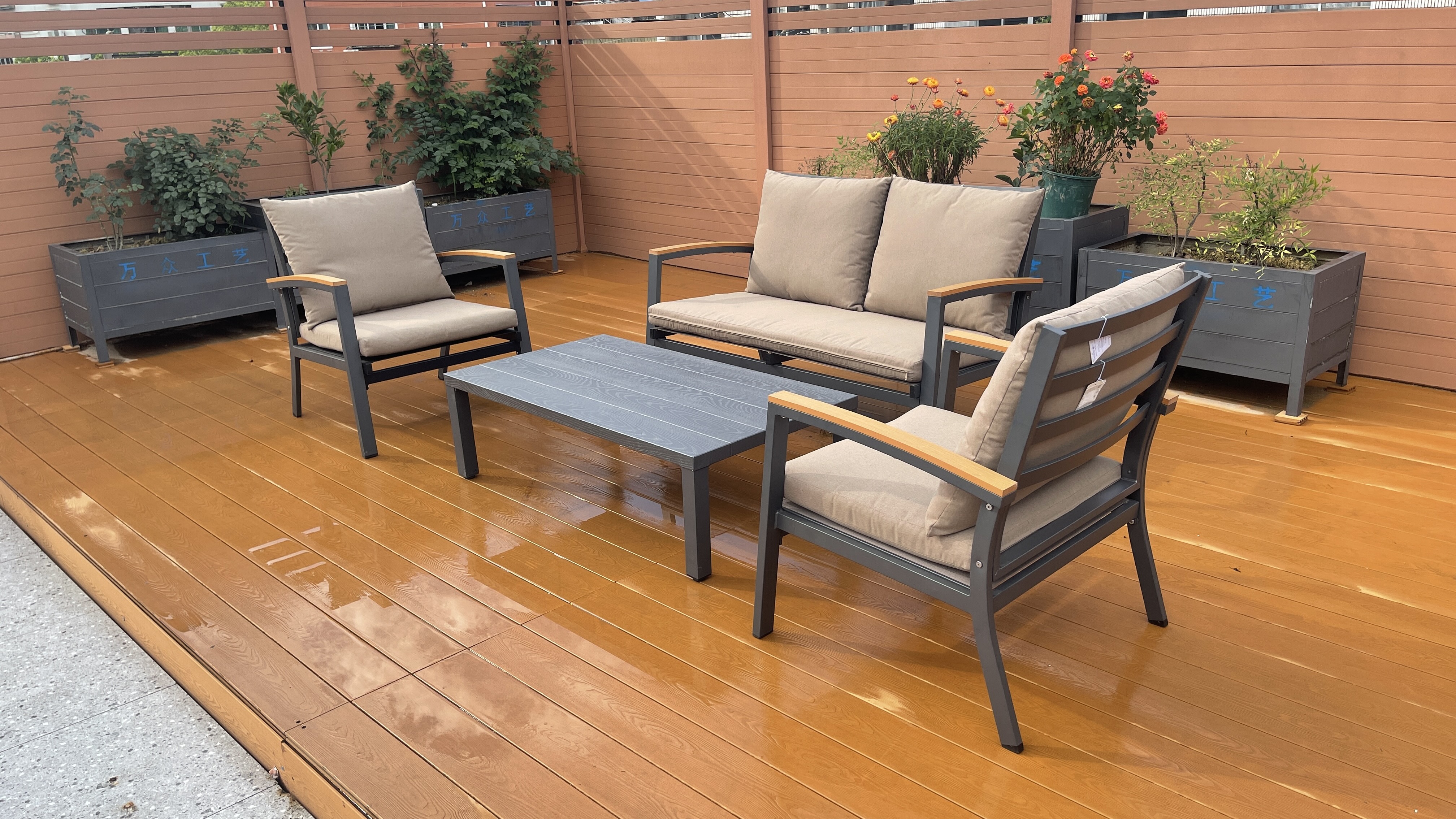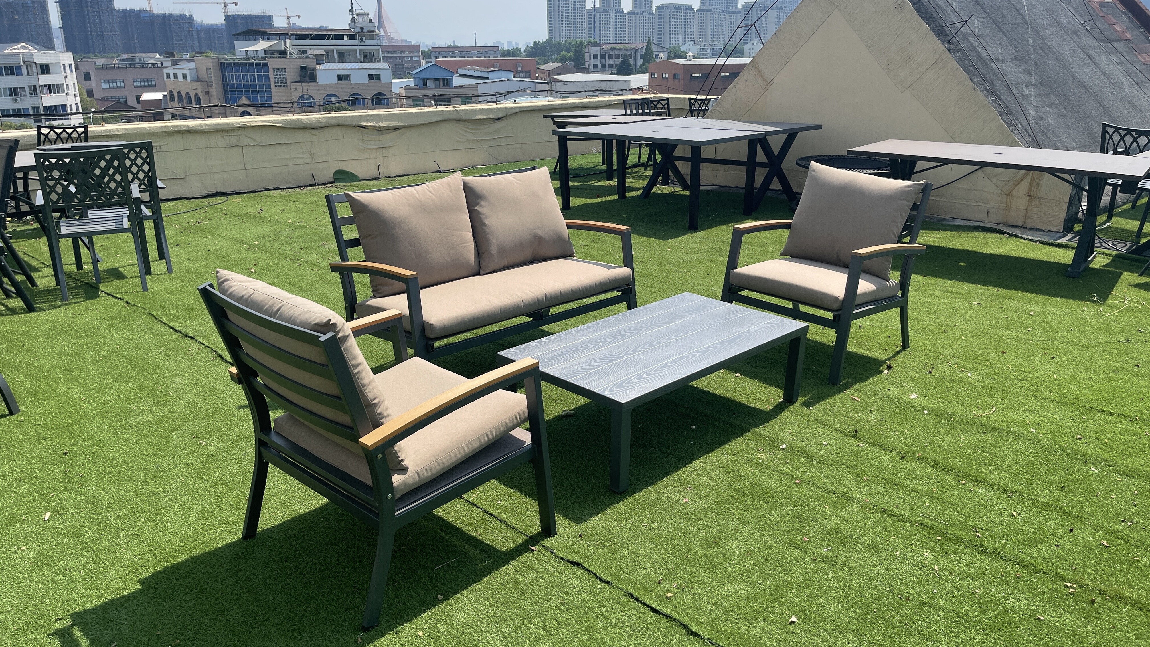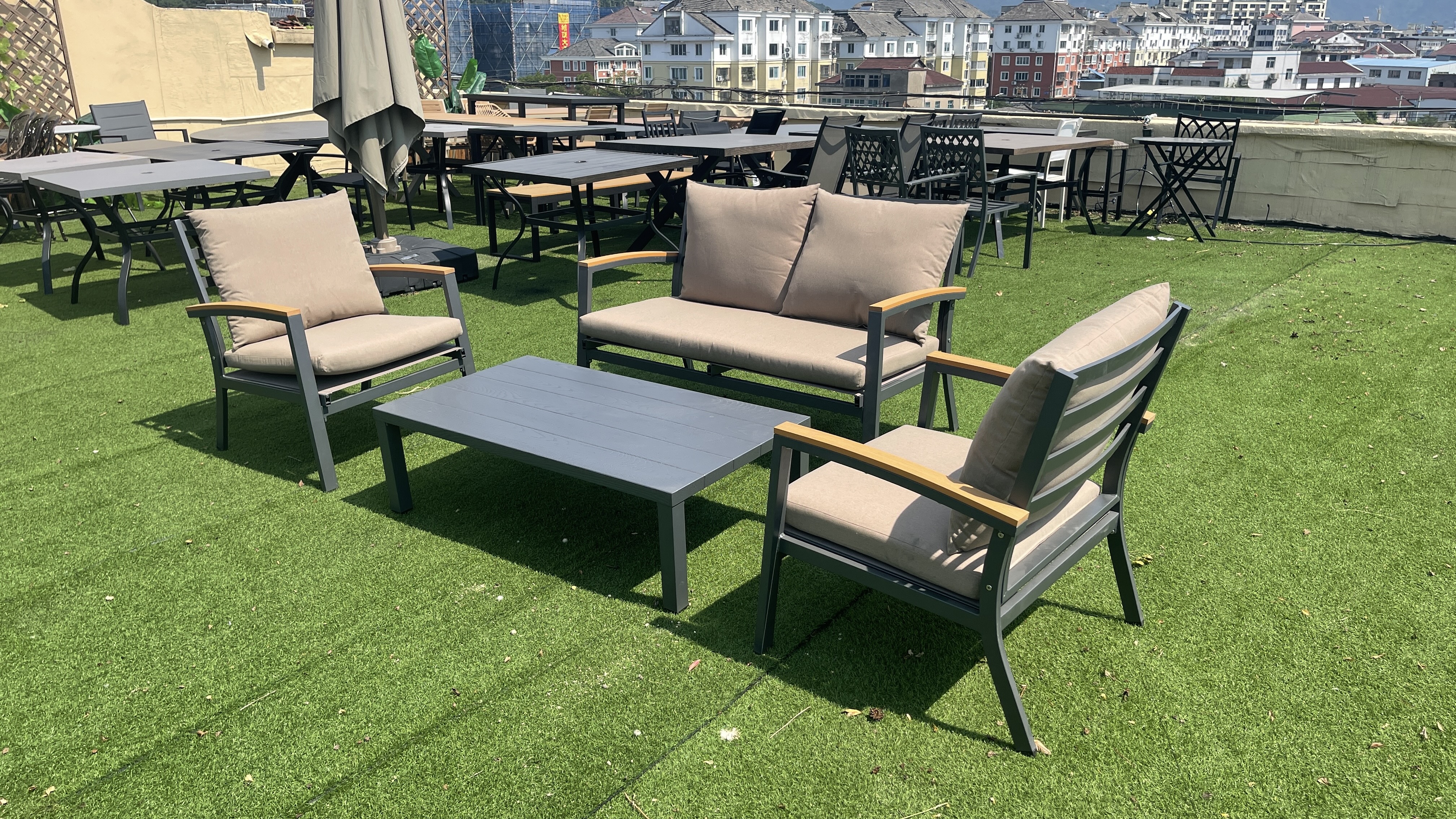 铝制休闲单人椅+铝制休闲双人椅+铝长方茶几(沙发四件套) 2*Alu single sofa +1*Alu two-seater sofa+1xAlu tea table (4 pcs sofa set)