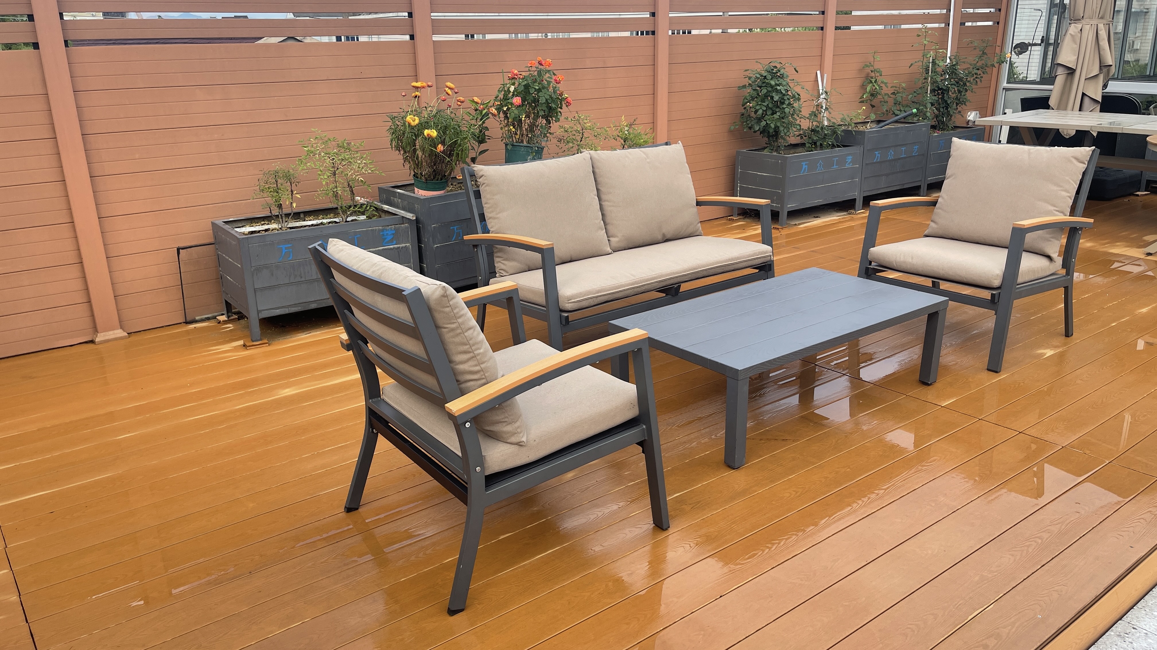 铝制休闲单人椅+铝制休闲双人椅+铝长方茶几(沙发四件套) 2*Alu sing