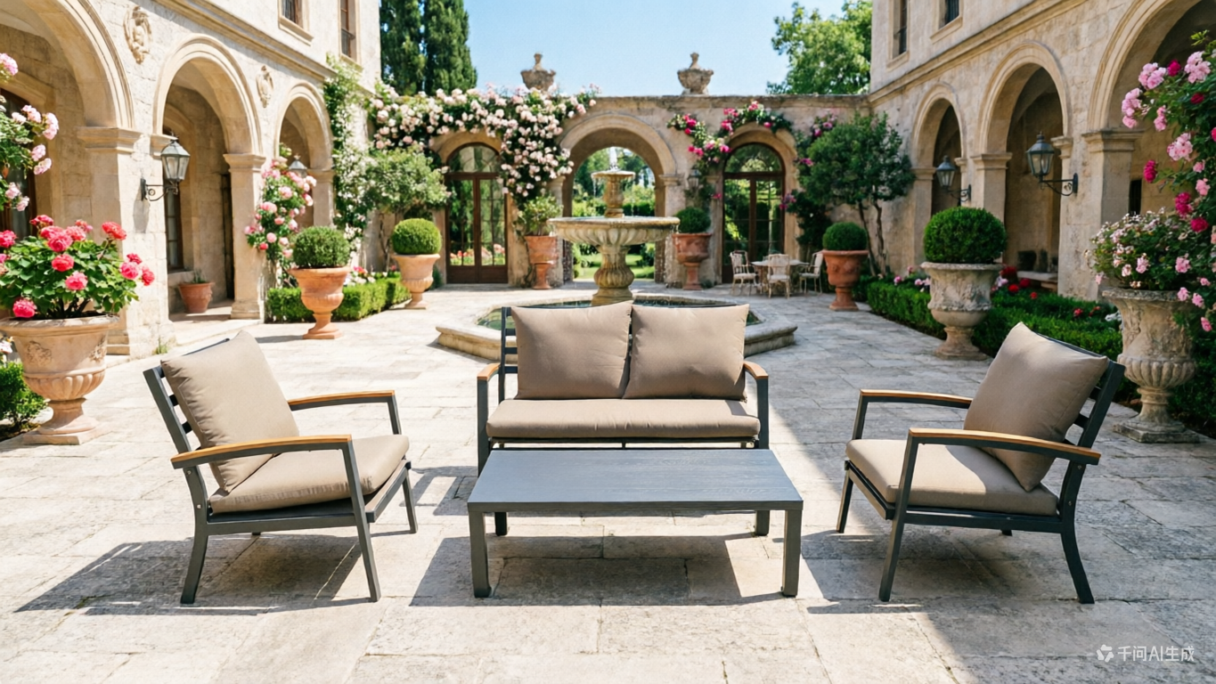 1*铝三人沙发+1*铝双人沙发+2*脚凳+1*铝玻璃茶几 (5件套带坐垫) 1