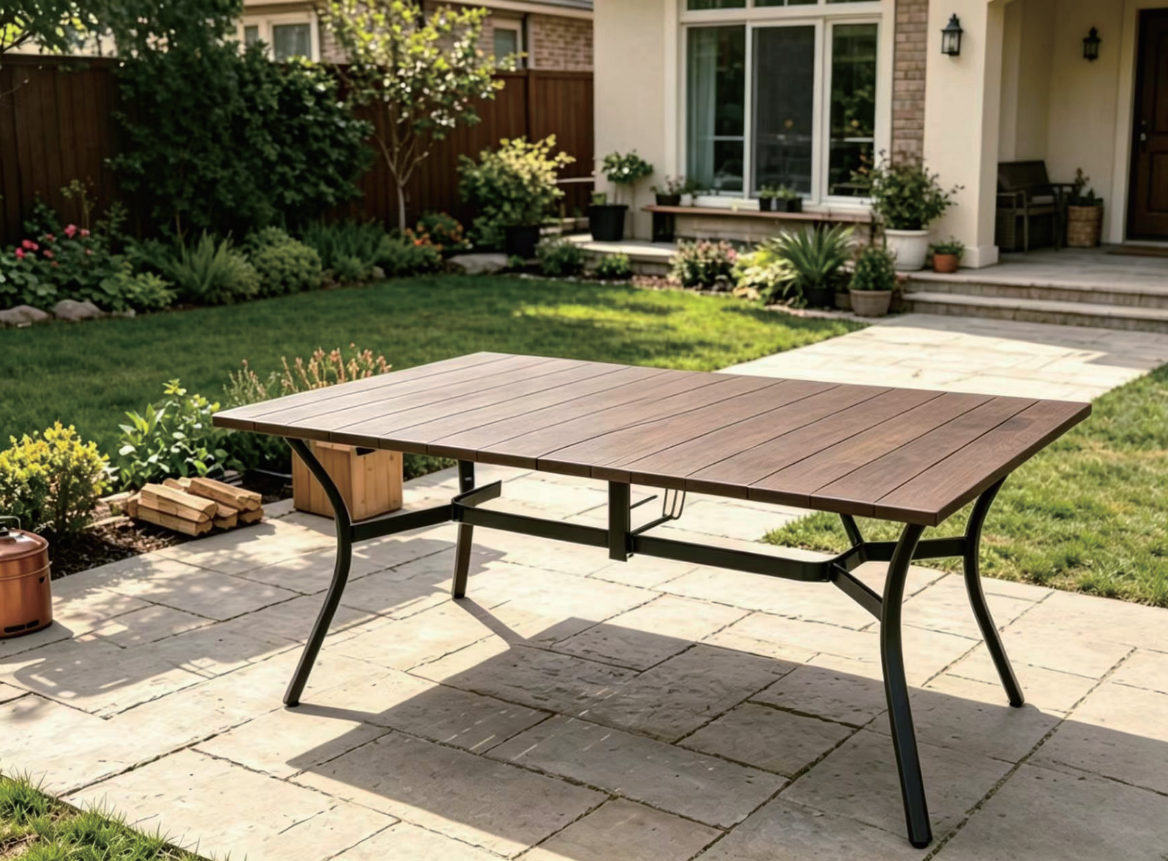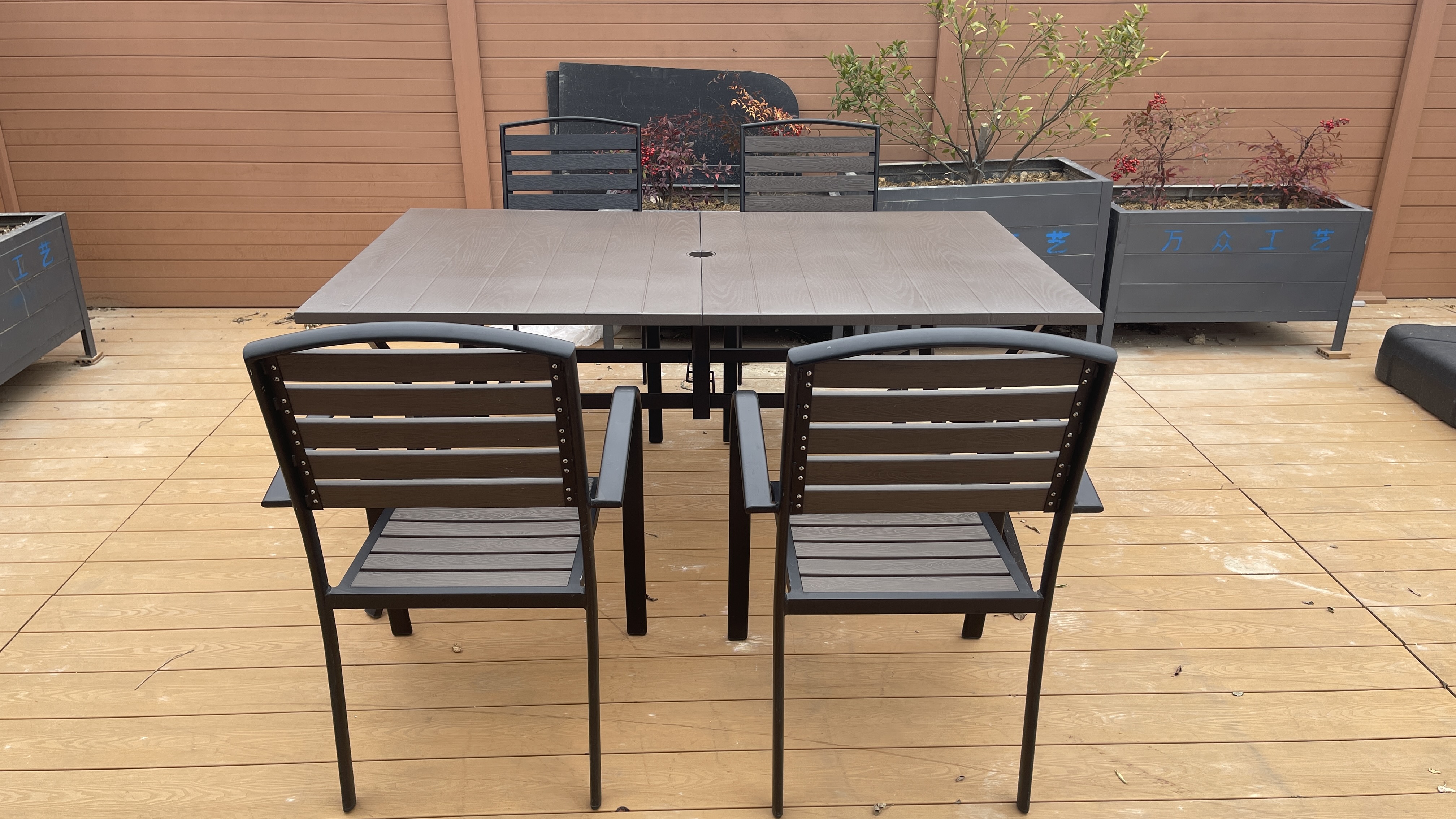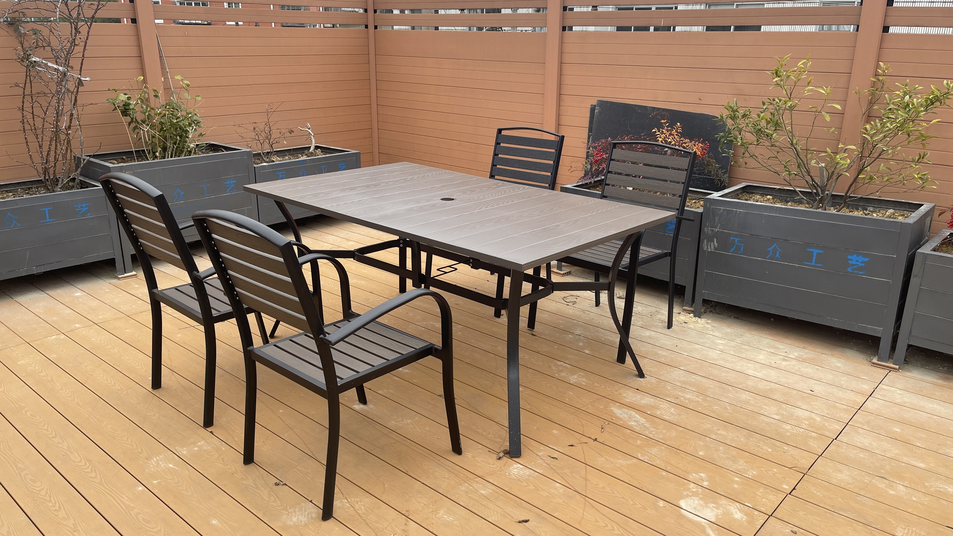 铁制塑木桌 Steel plastic wood table