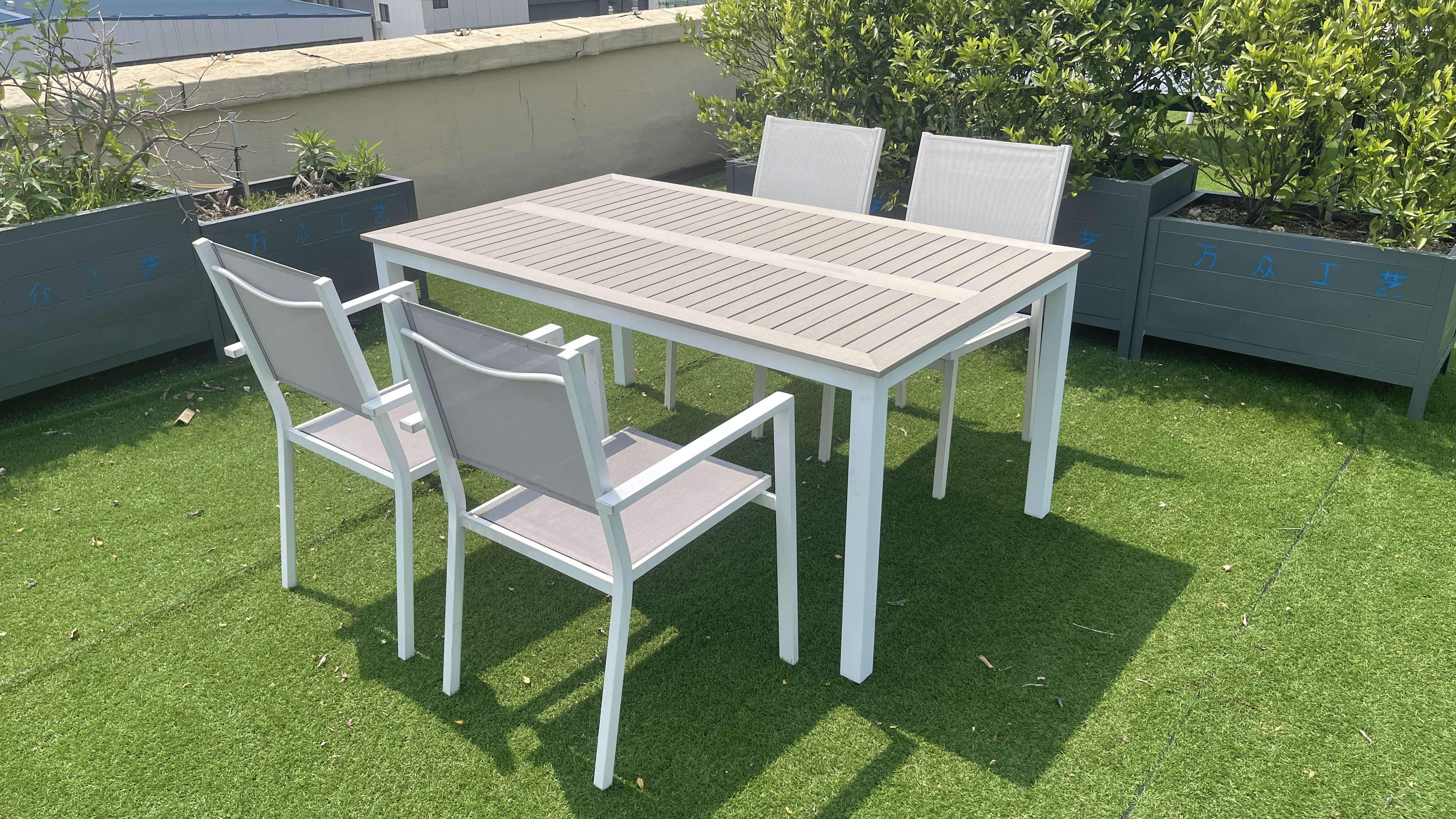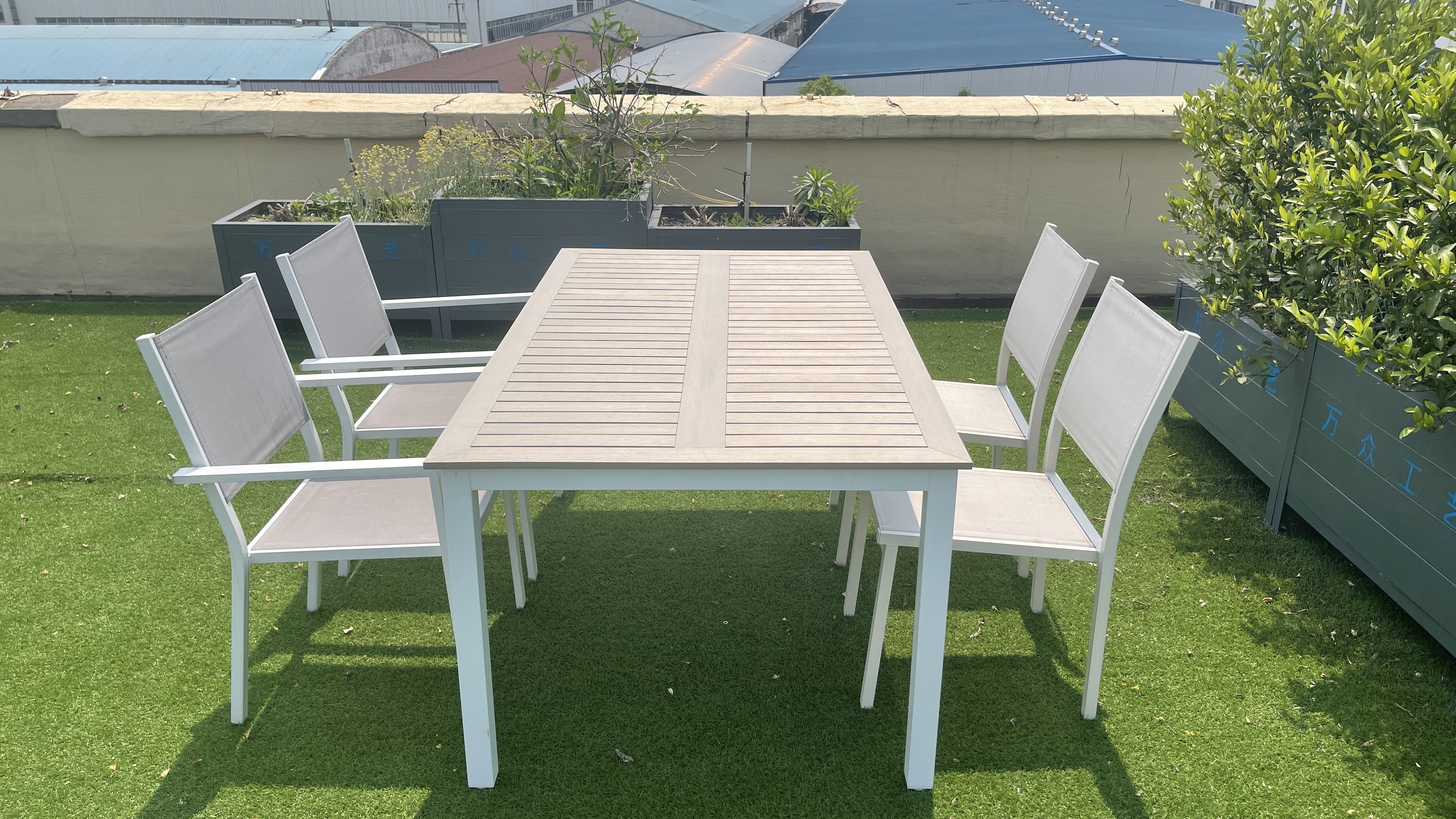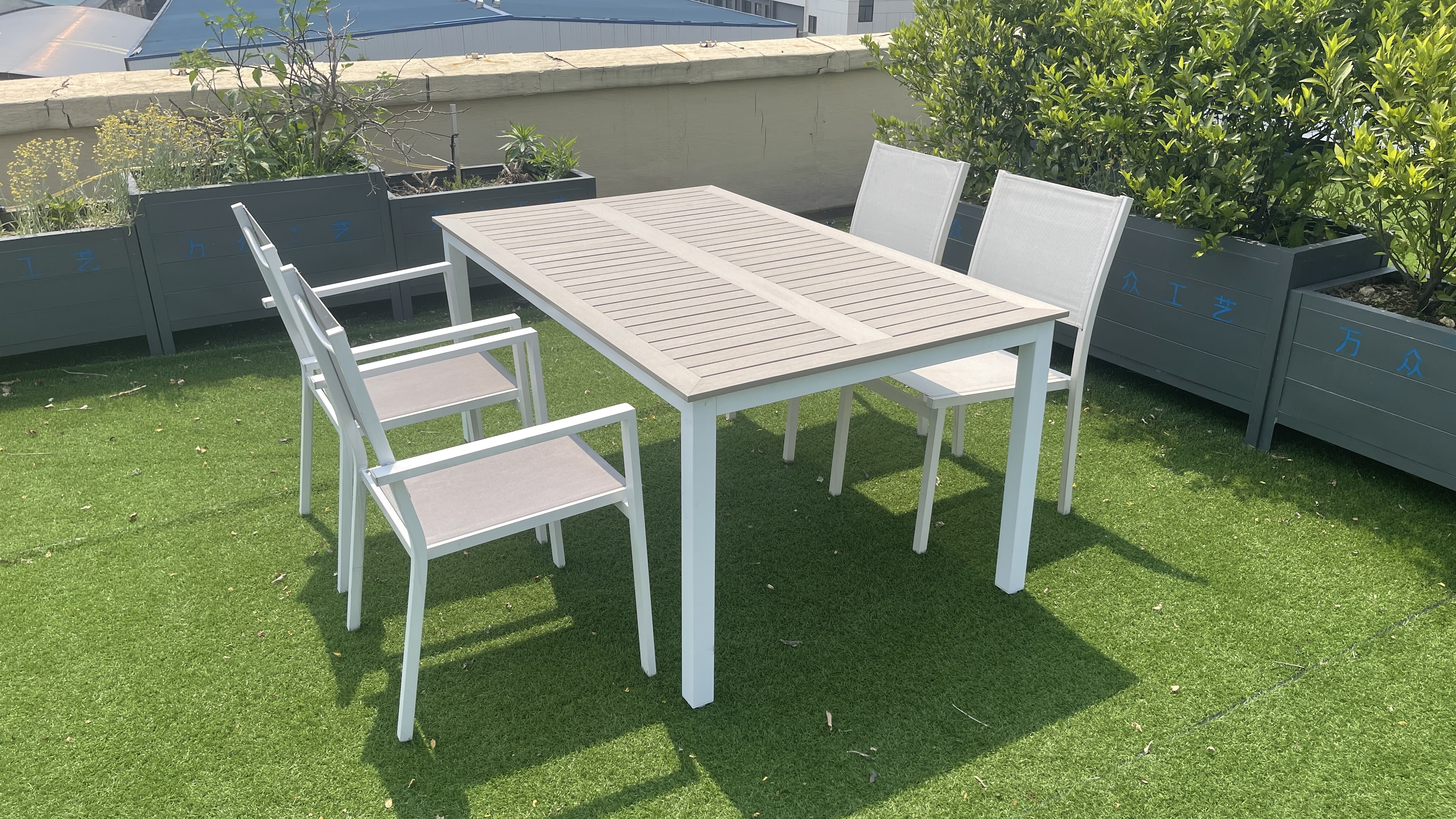 铝制塑木抽拉桌(两片式) Alu plastic wood extendable