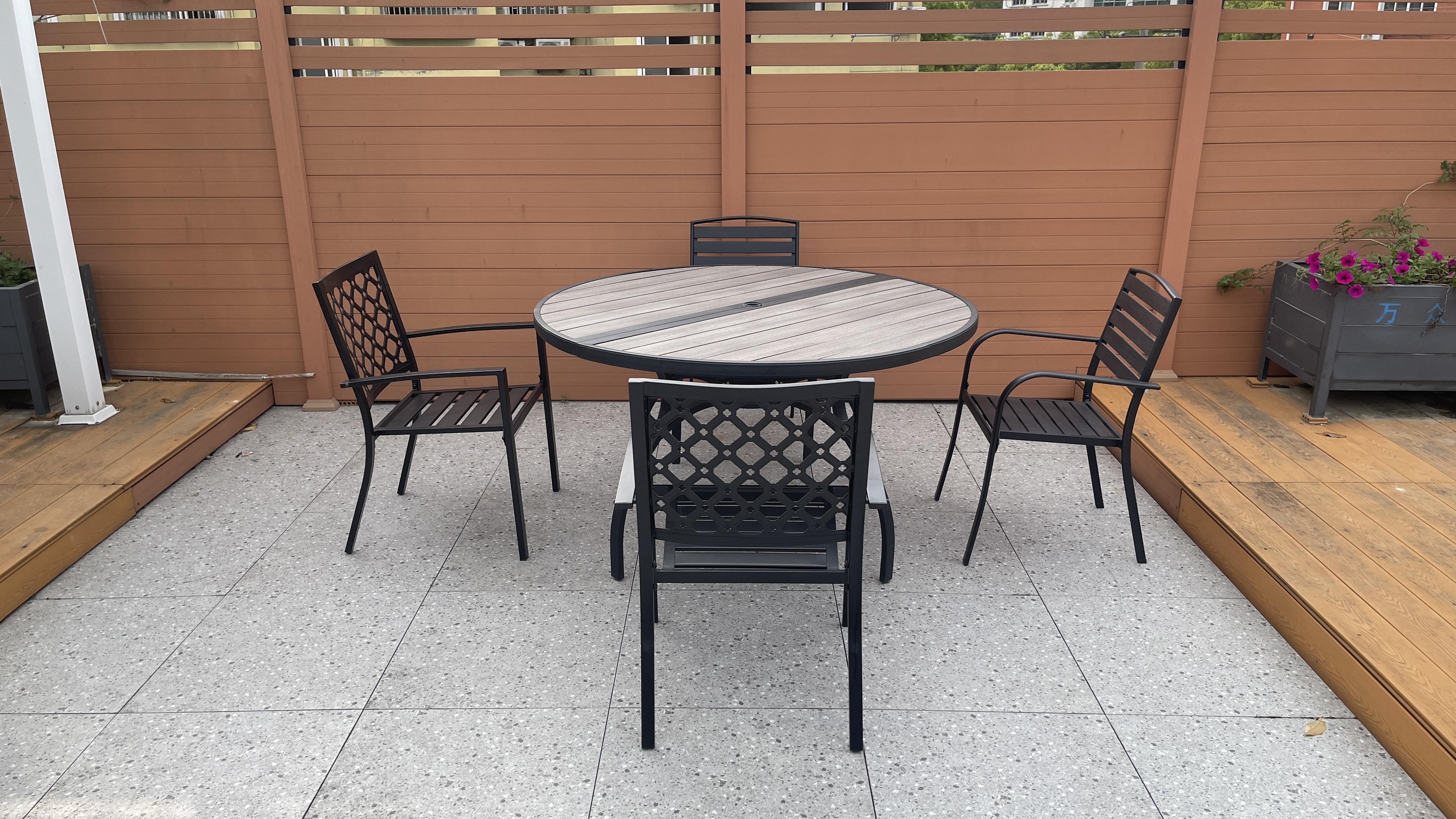 铁塑木圆桌steel plastic wood table