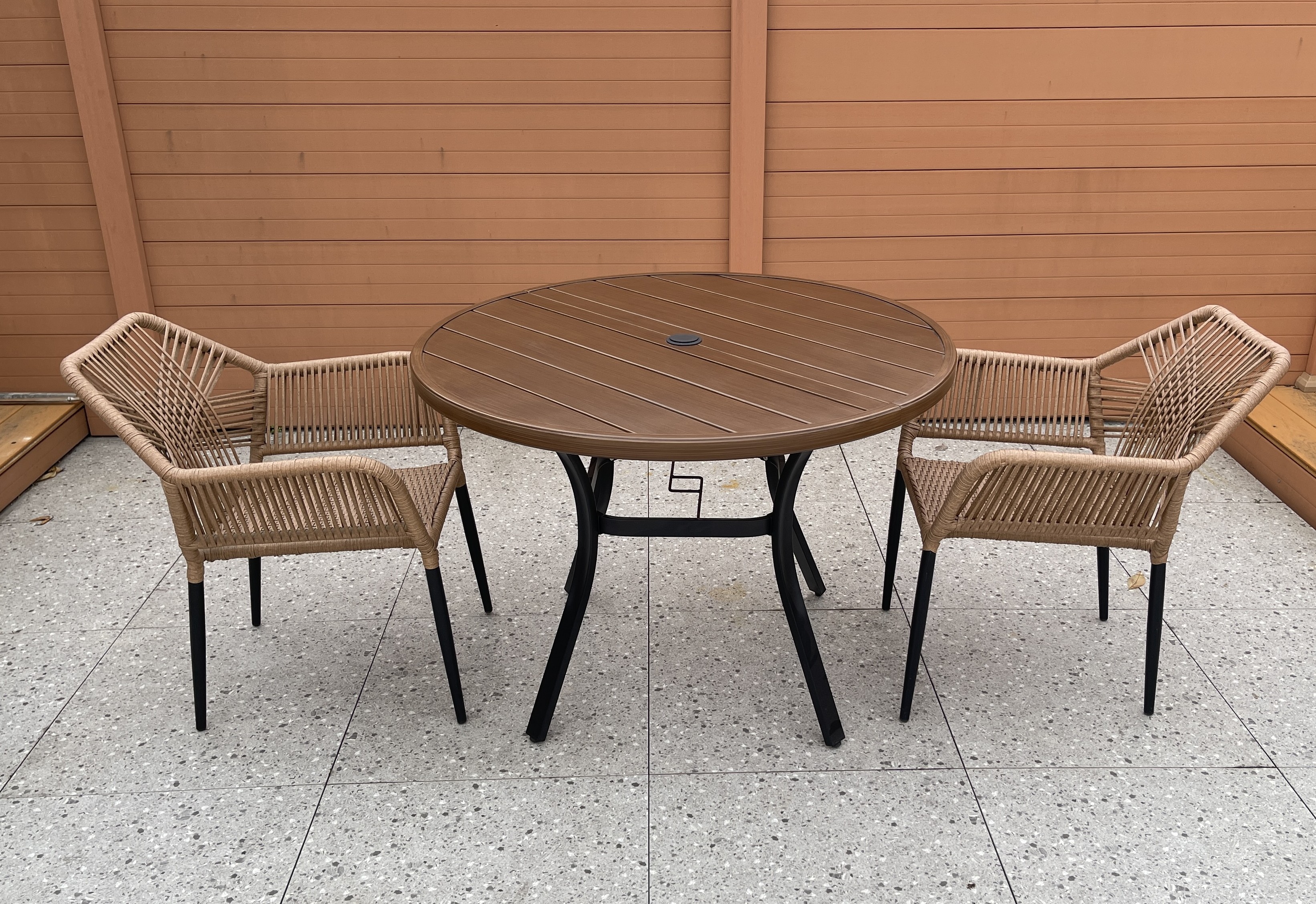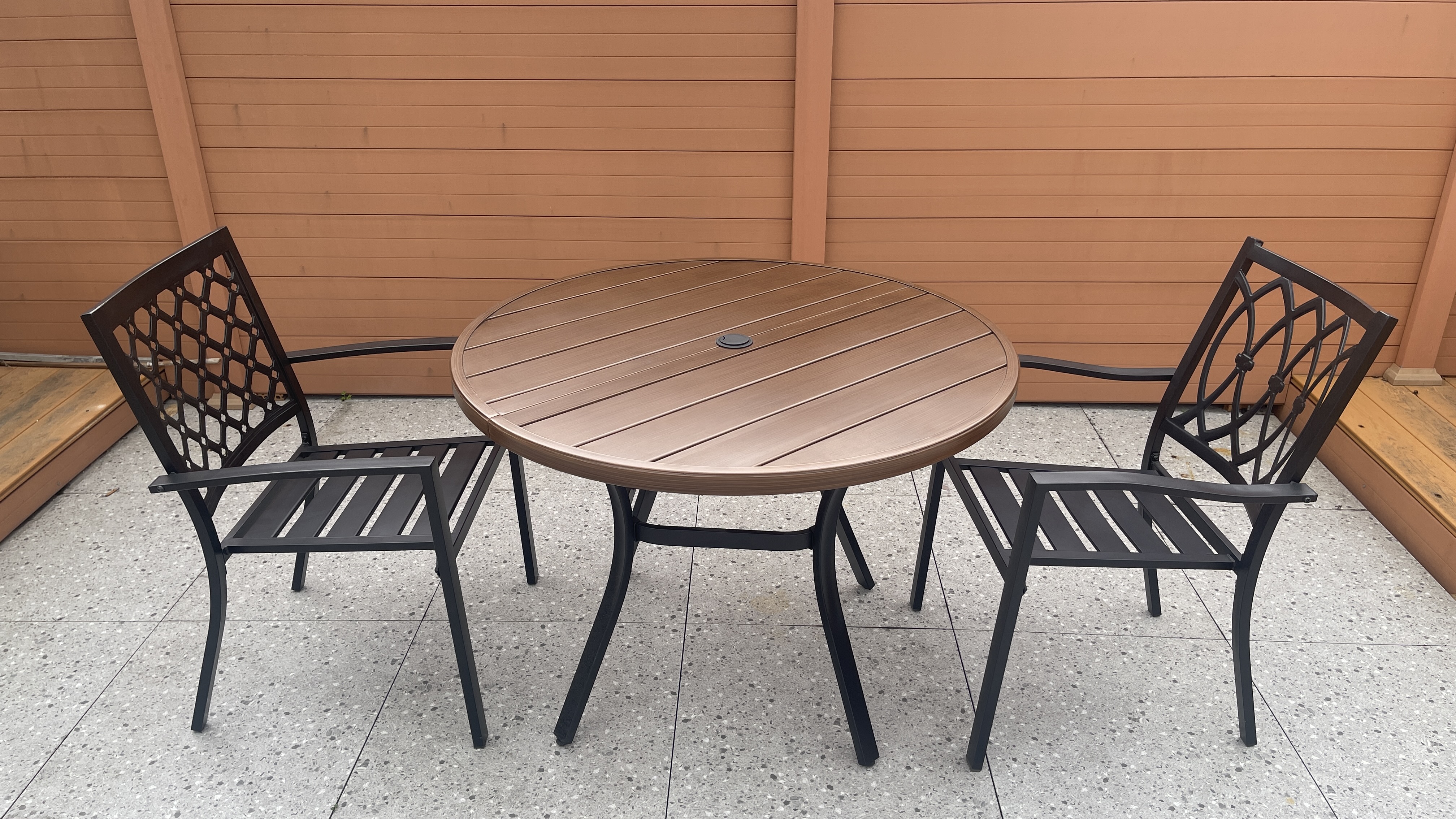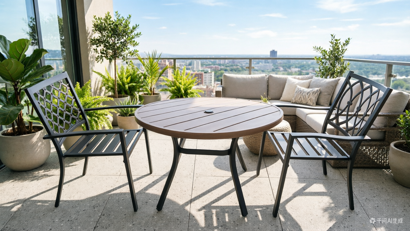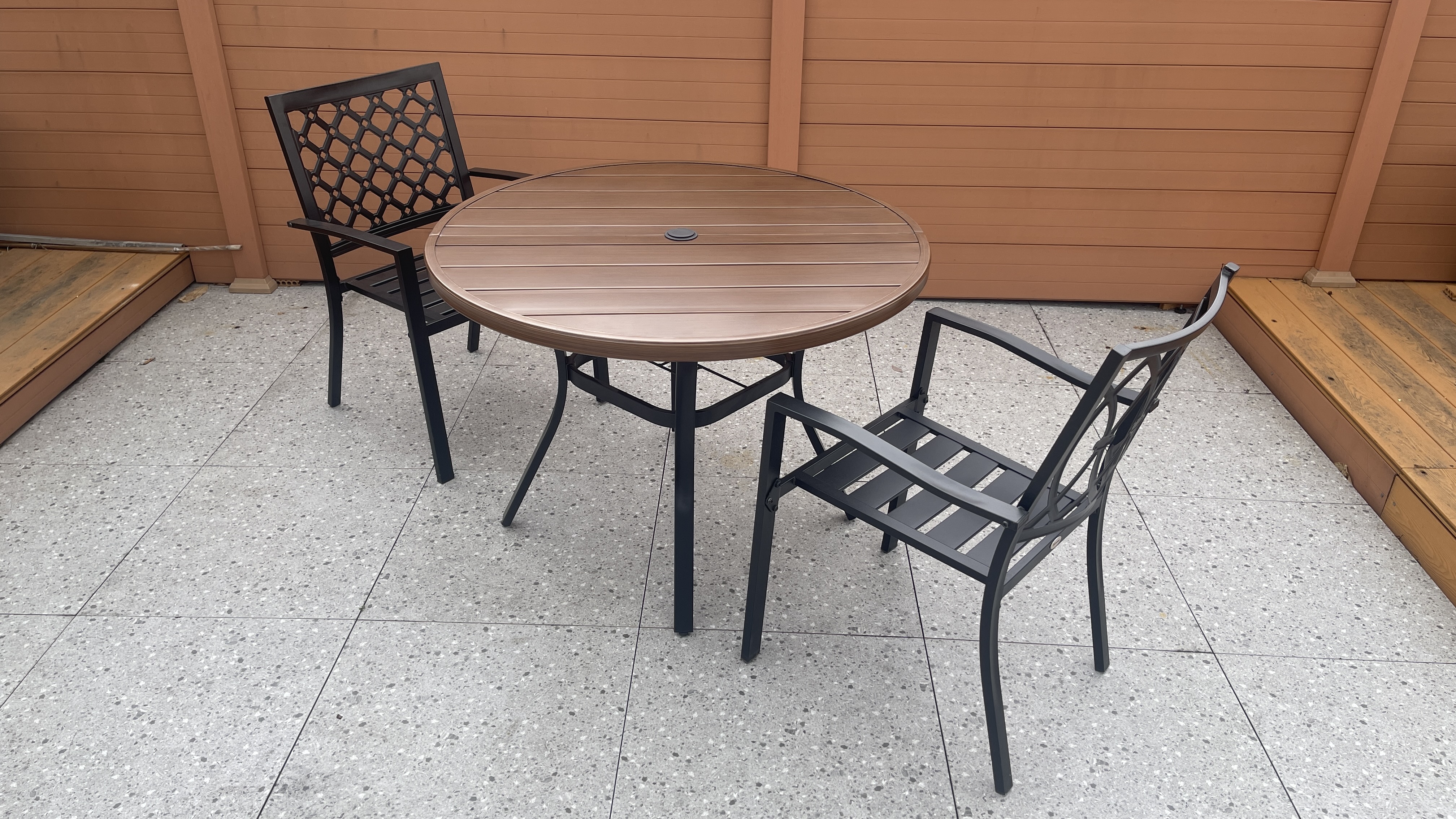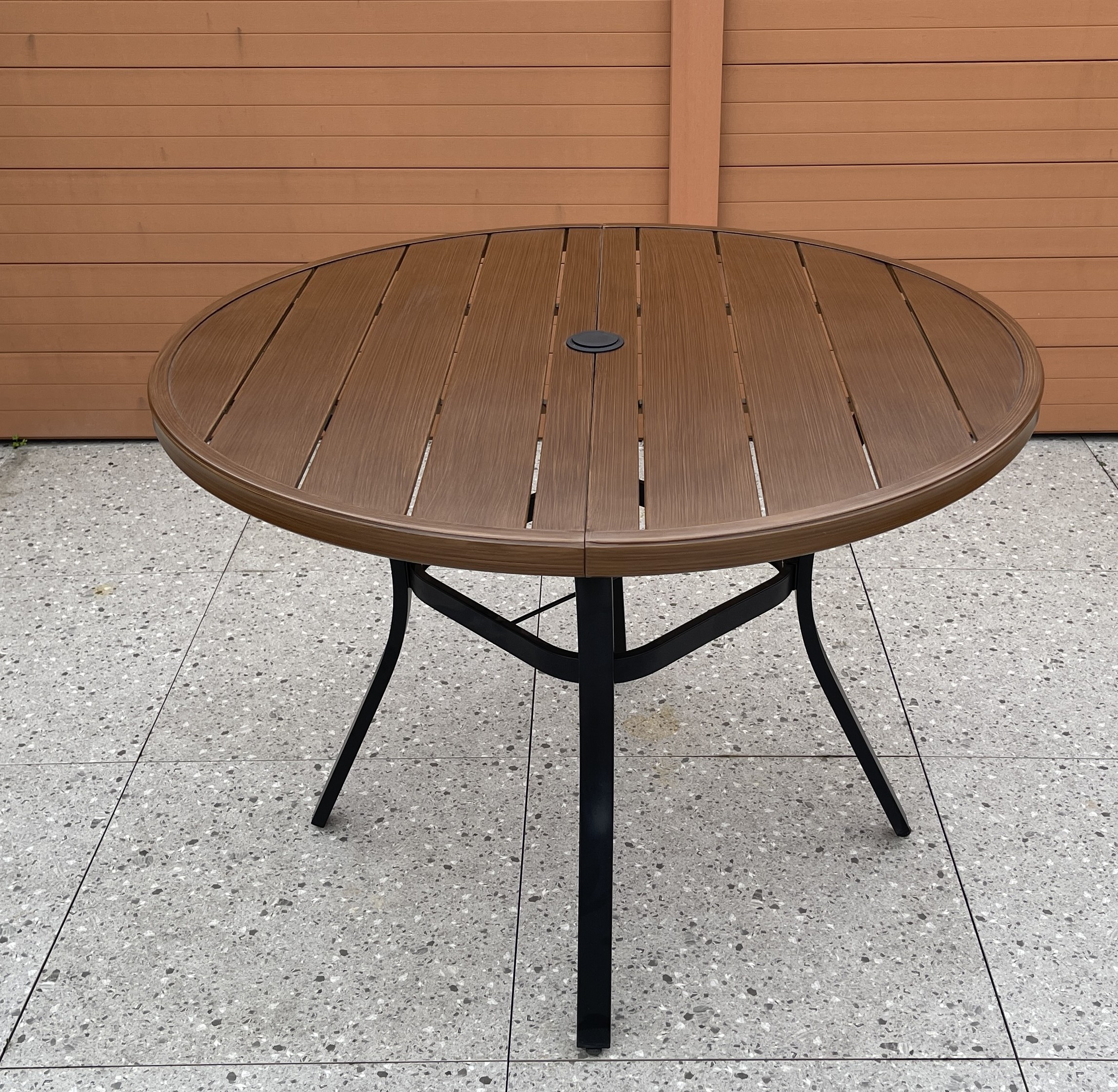 铁塑木圆桌steel plastic wood table