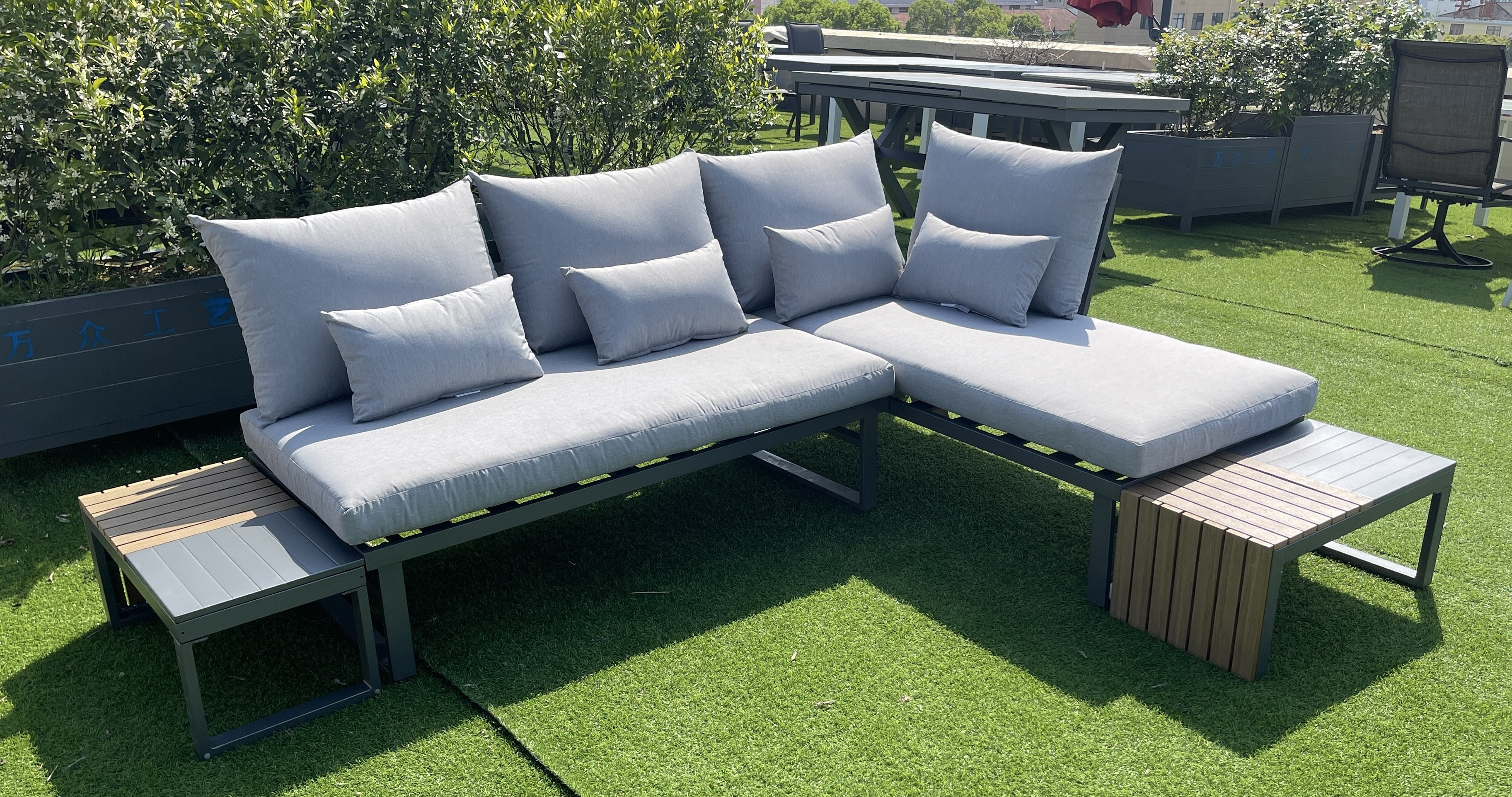 1*铝三人沙发+1*铝双人沙发+2*脚凳+1*铝玻璃茶几 (5件套带坐垫) 1