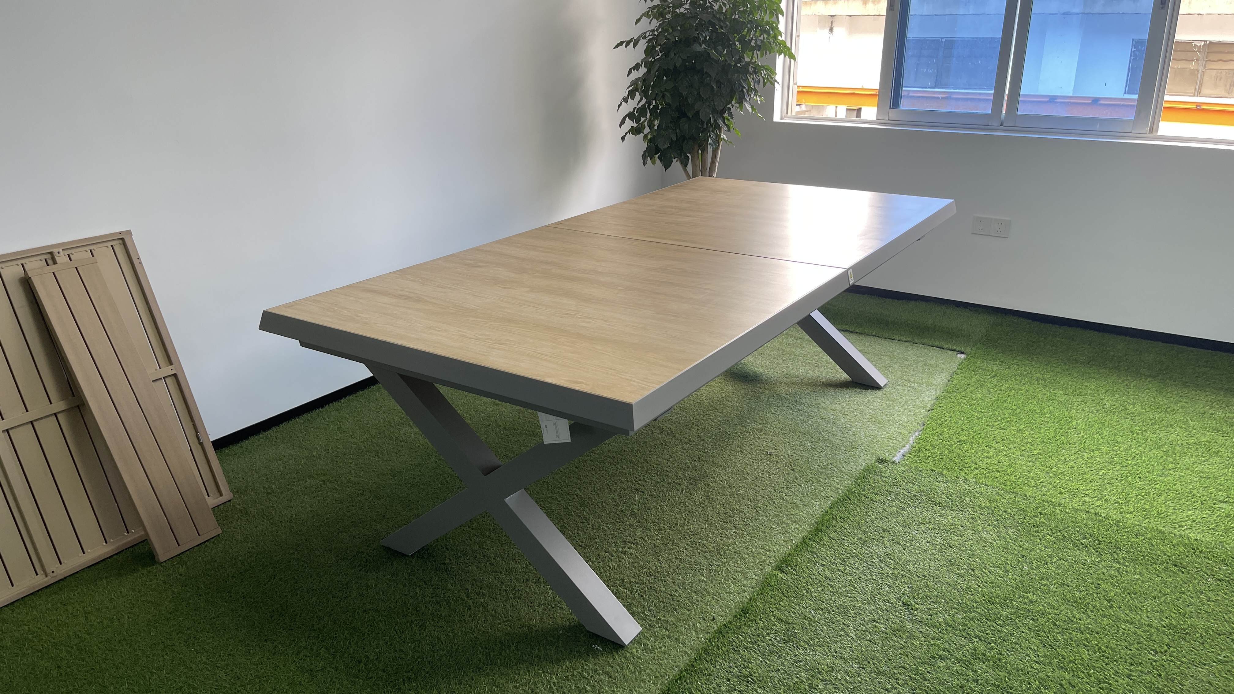 铝制自动塑木抽拉桌Aluminium plastic wood extensio