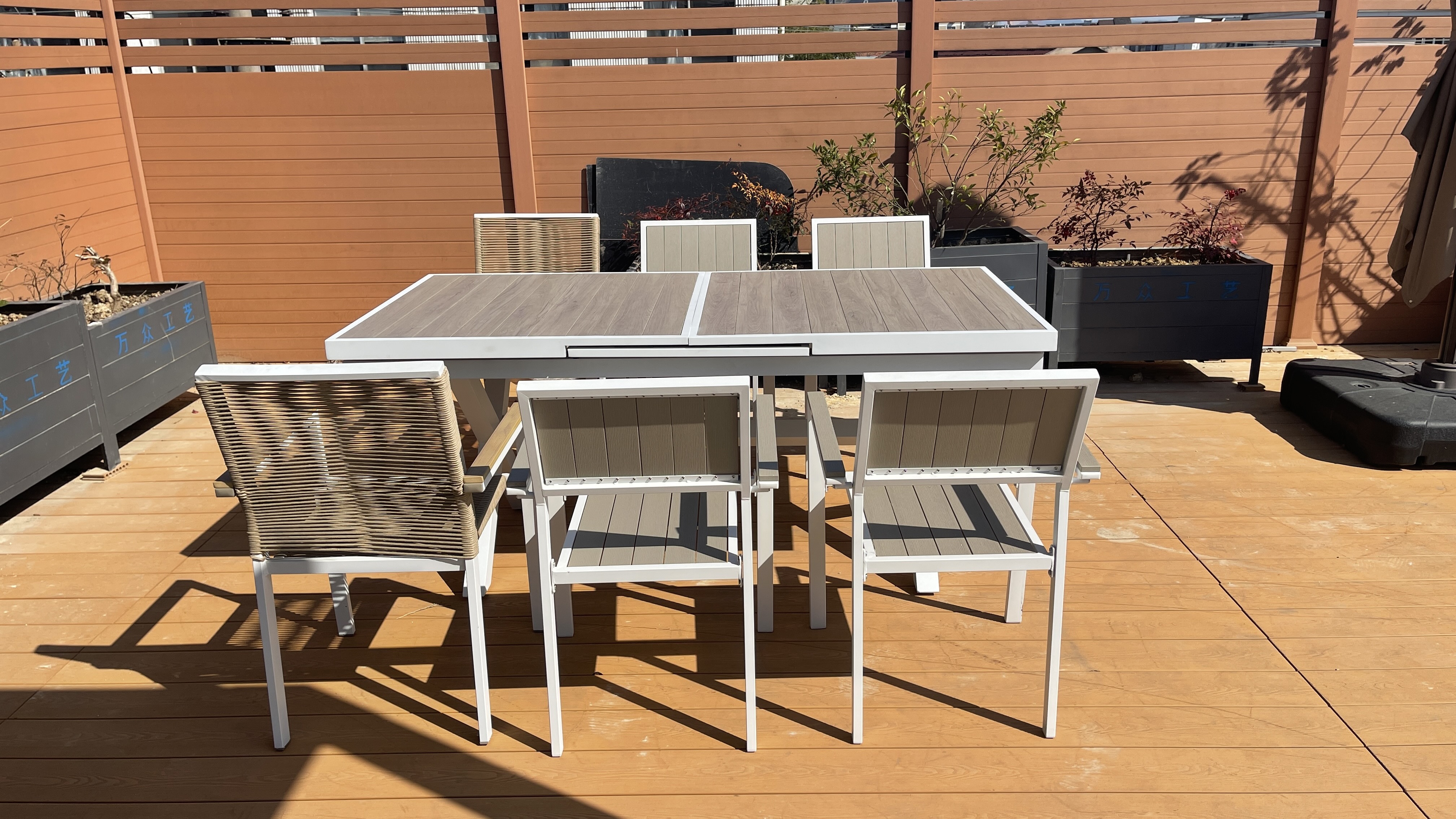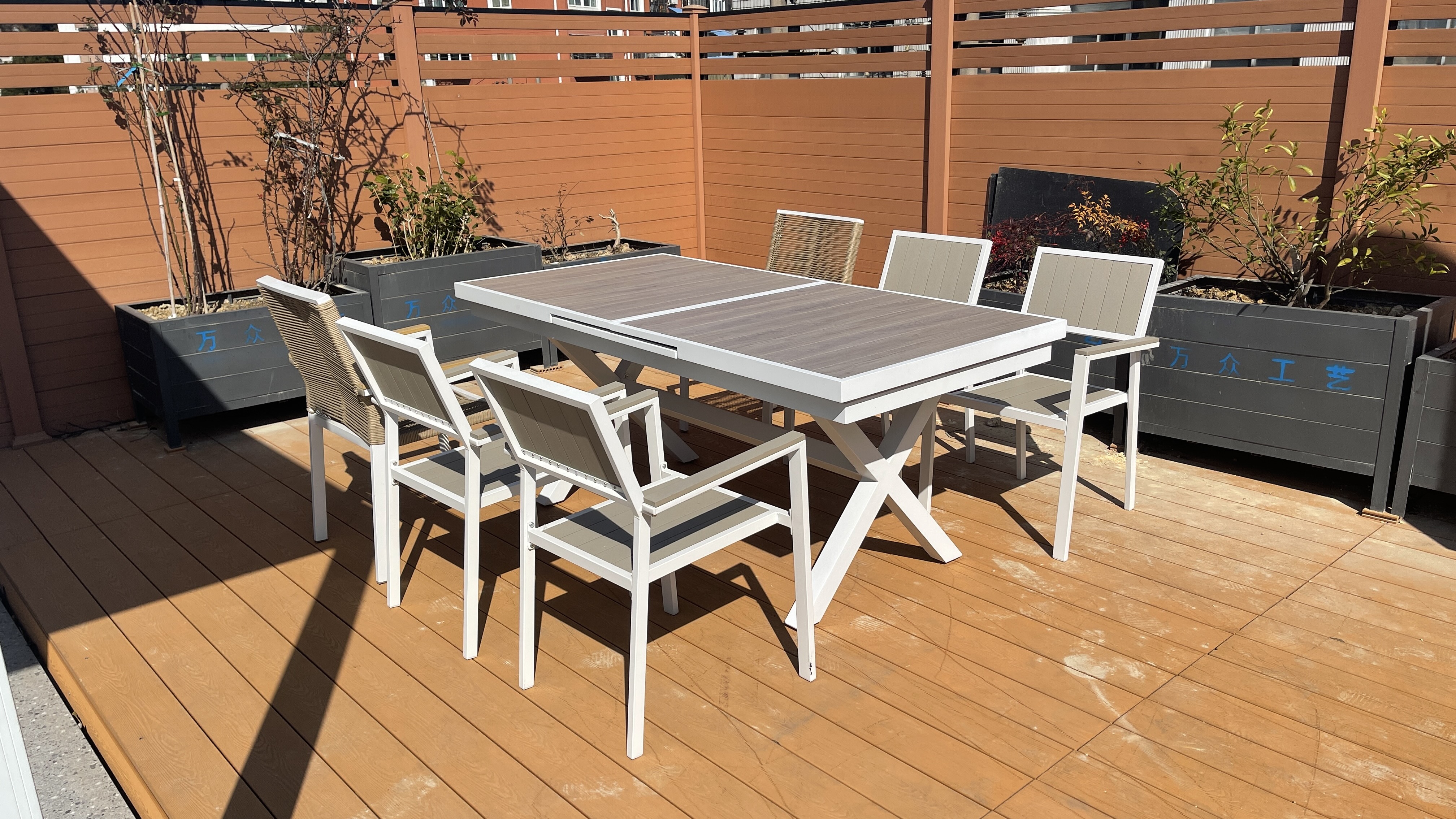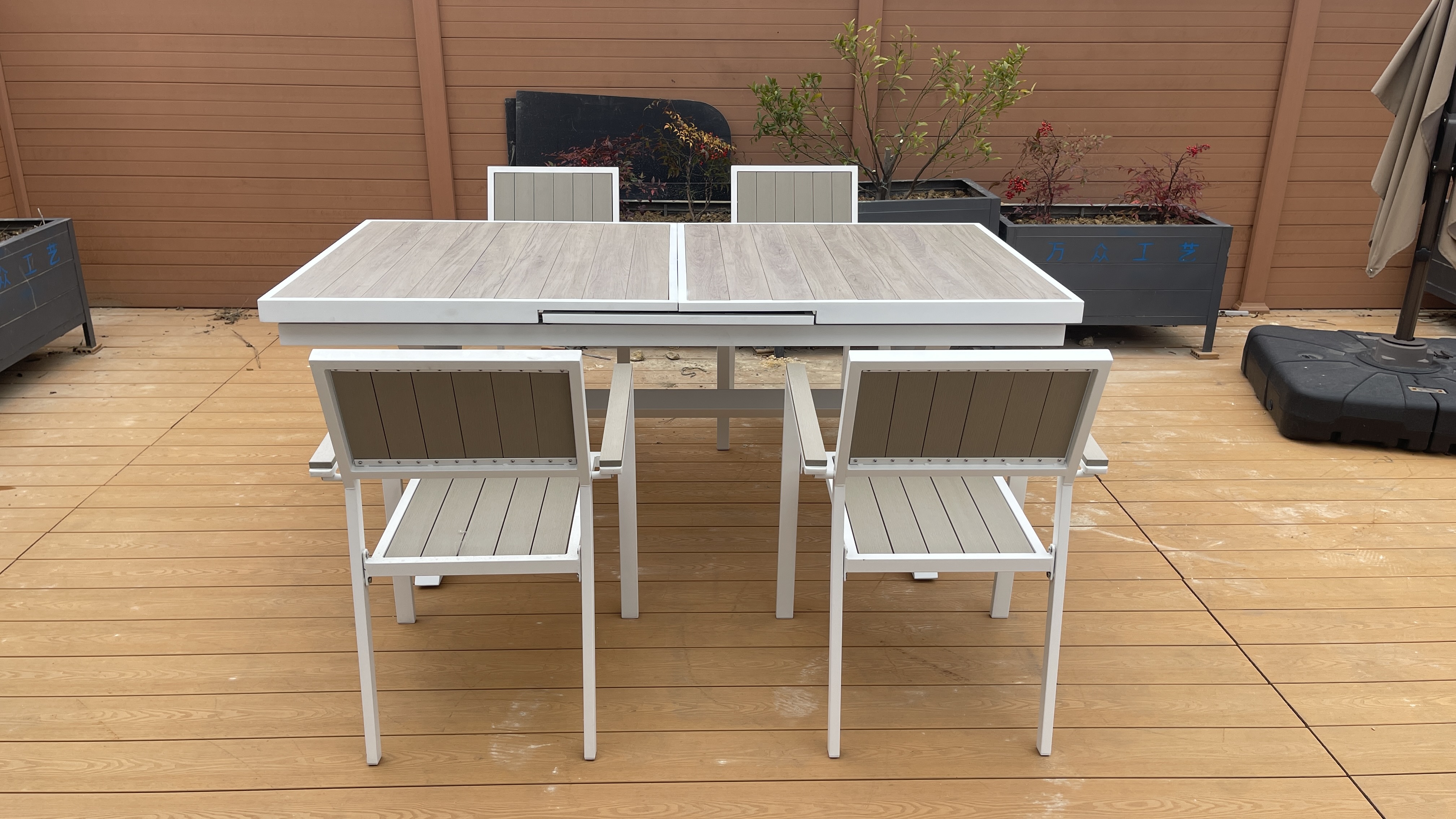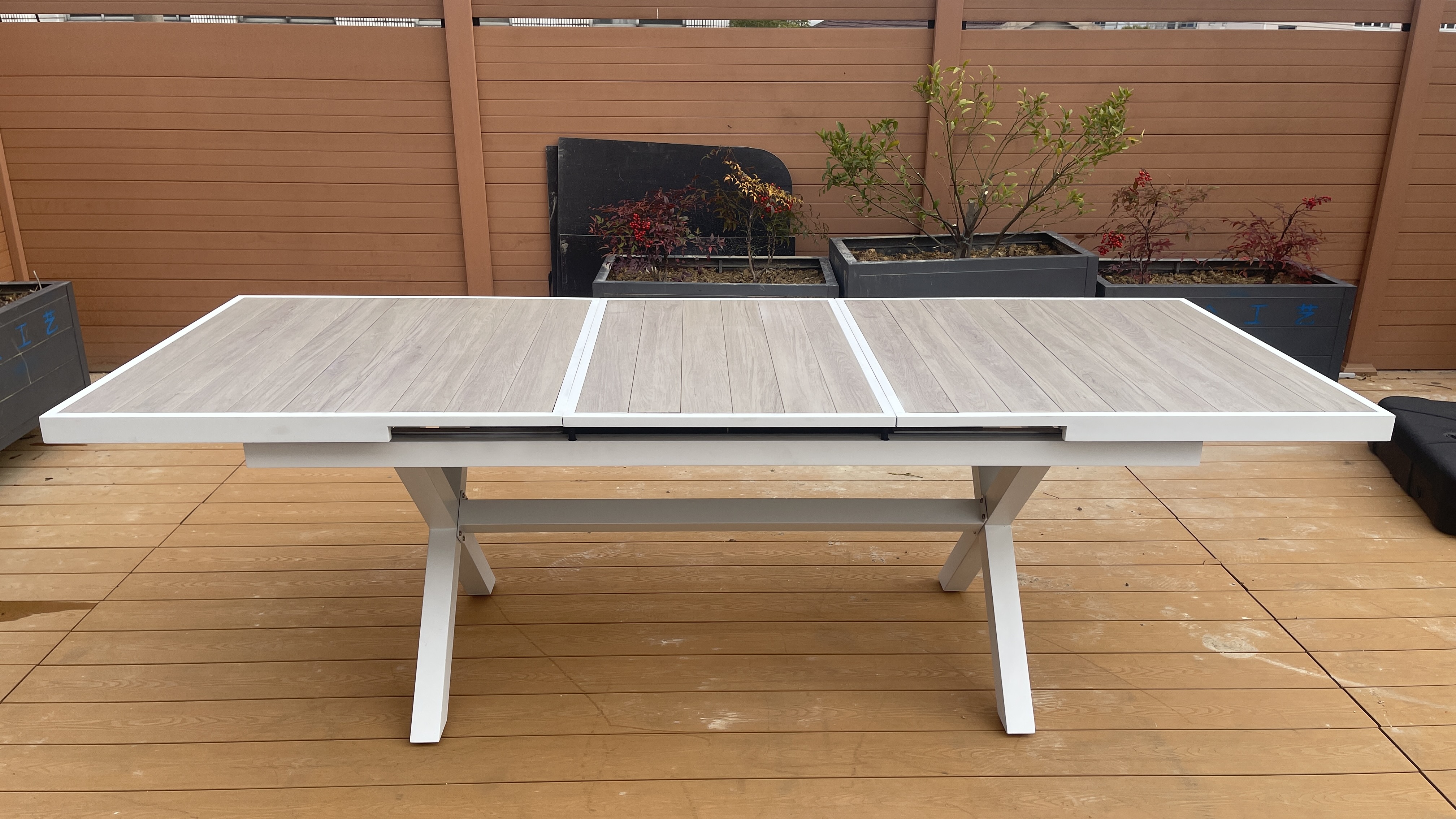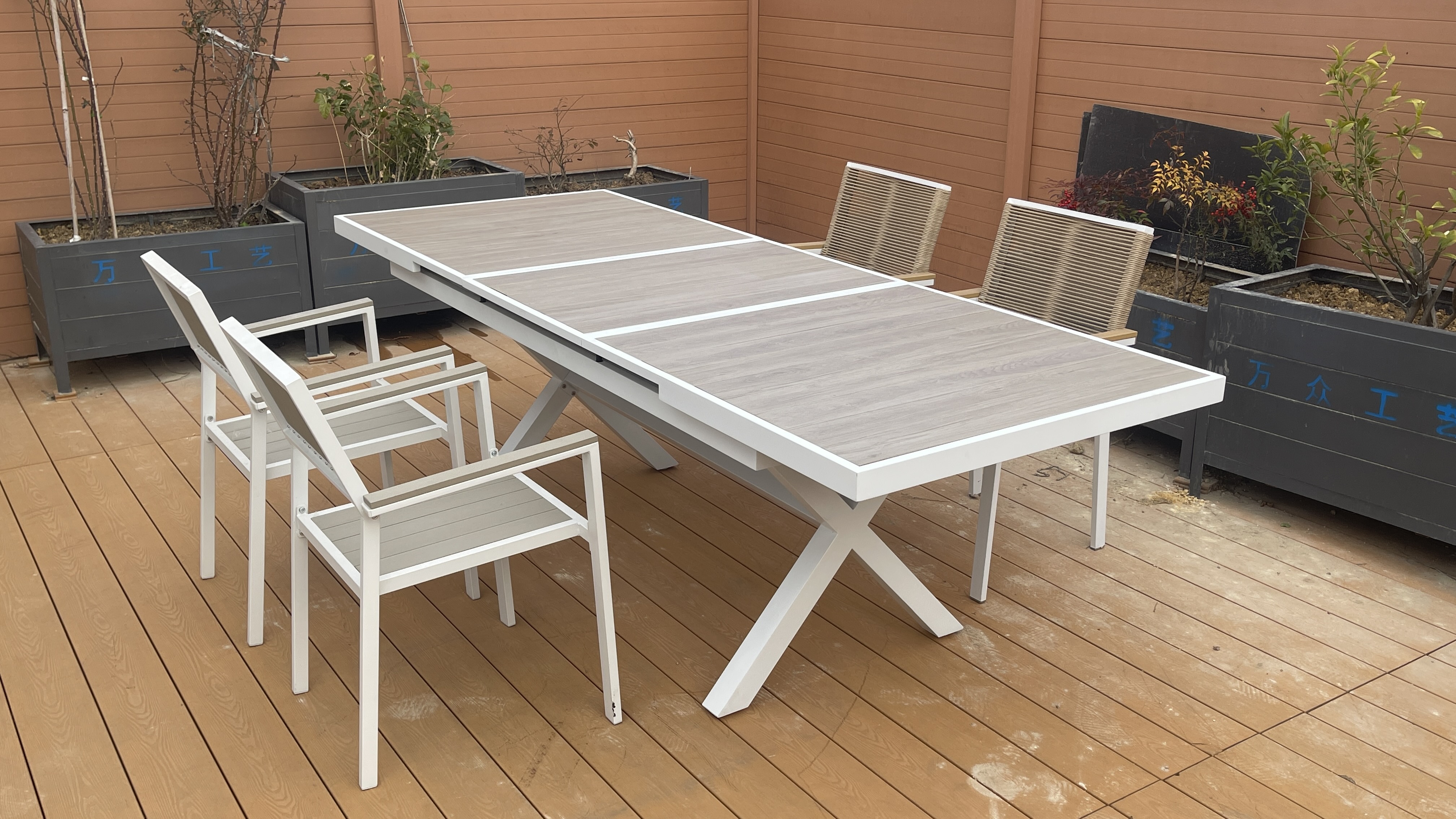 铝制自动塑木抽拉桌Aluminium plastic wood extensio