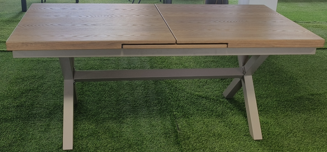 全铝仿木纹自动拉伸桌 Alu plate wood grain auto extendable table
